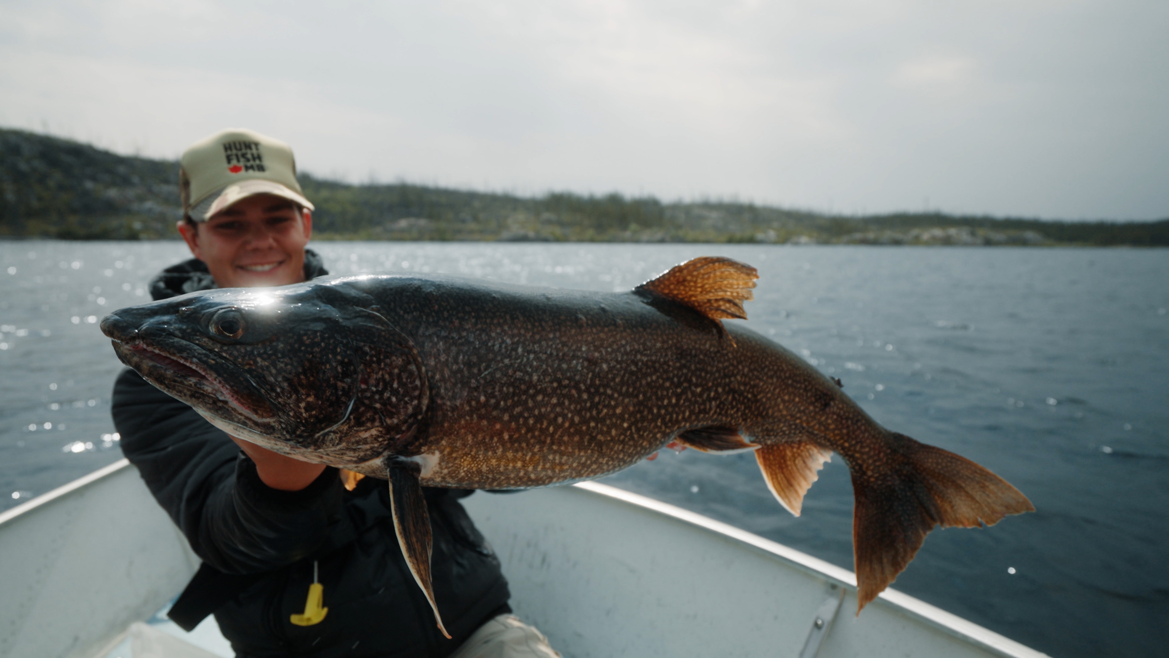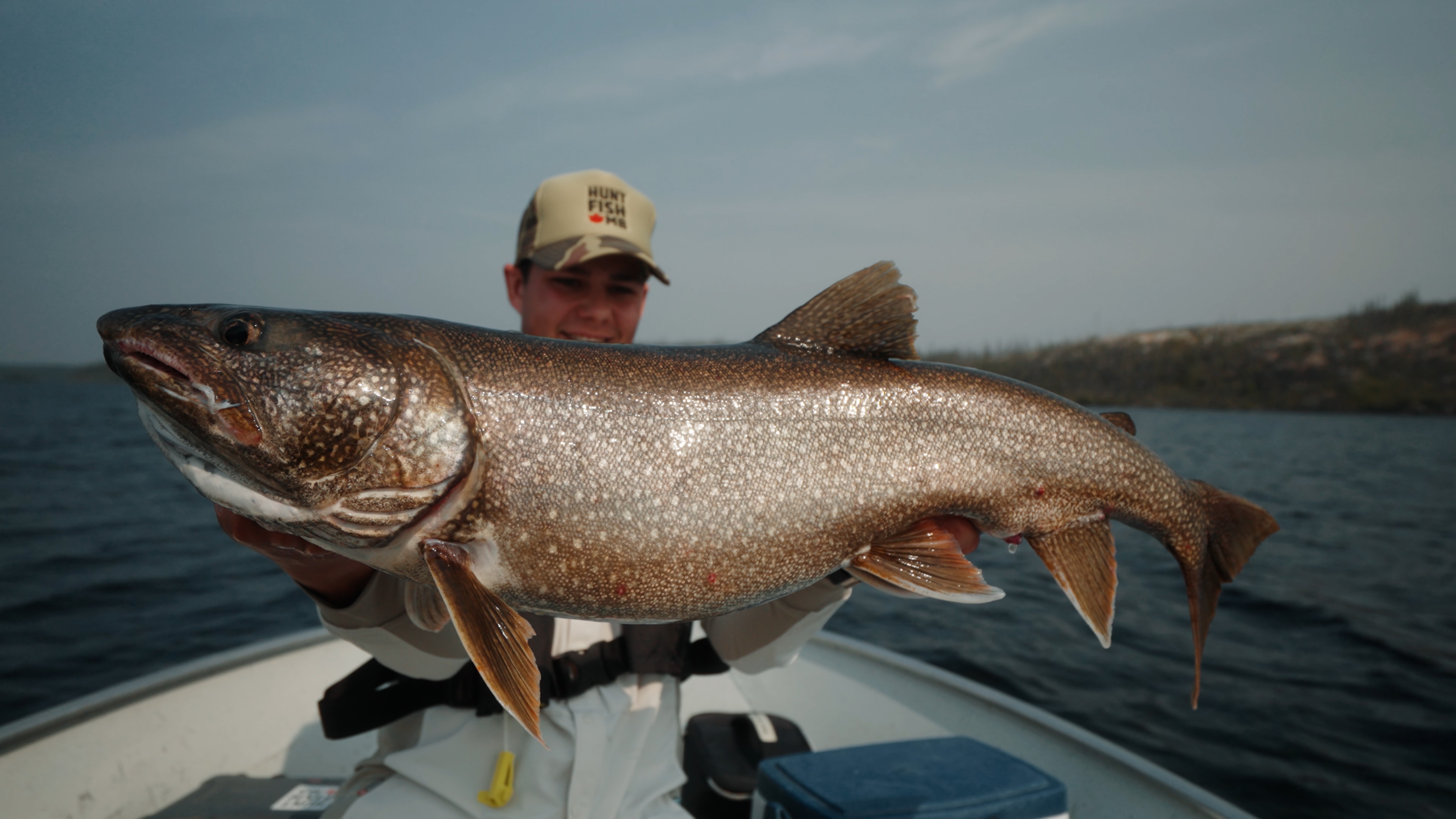Sa unang bahagi ng aming paglalakbay, isang flight mula sa Winnipeg patungong Lynn Lake, nag-scroll ako sa aking telepono, tinitingnan ang mga larawan mula sa aking huling paglalakbay sa Laurie River. Nagbabalik-tanaw sa mga alaala, maalamat na panghuhuli ng isda, at magagandang panahon. Isang larawan, sa partikular, ang nakaukit sa aking utak ng isang malaking humpback lake trout mula sa Kamuchawie Outpost na nahuli ng tatay kong si Jay na si Laverne. Ito ang pinakamalaking lake trout na nakita ko. Sina Jay at Laverne ay nasa paglalakbay din na ito, at sa palagay ko ang aming plano ay gumugol ng isang araw sa Kamuchawie sa paghahanap muli ng mga higanteng lakers.