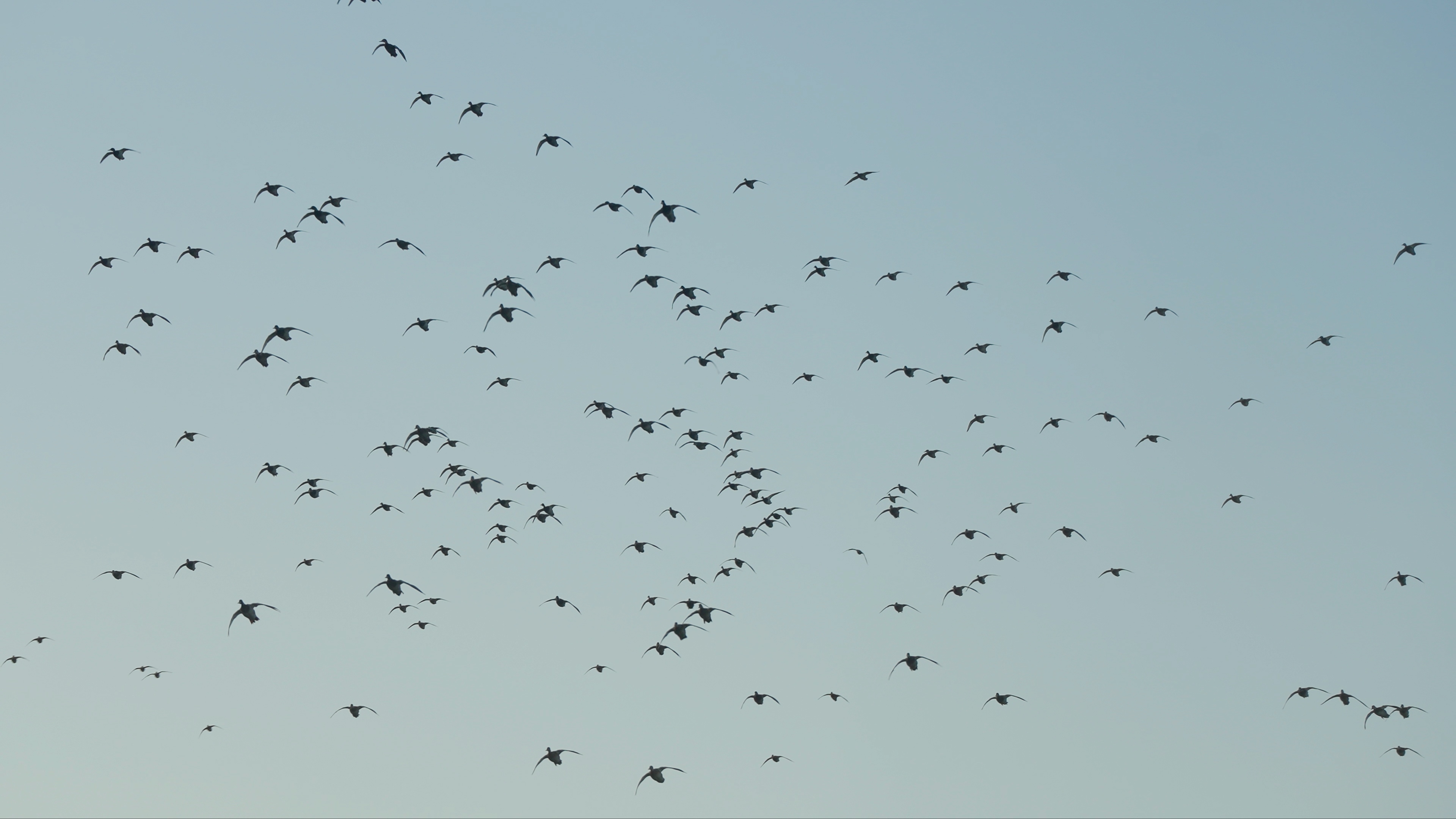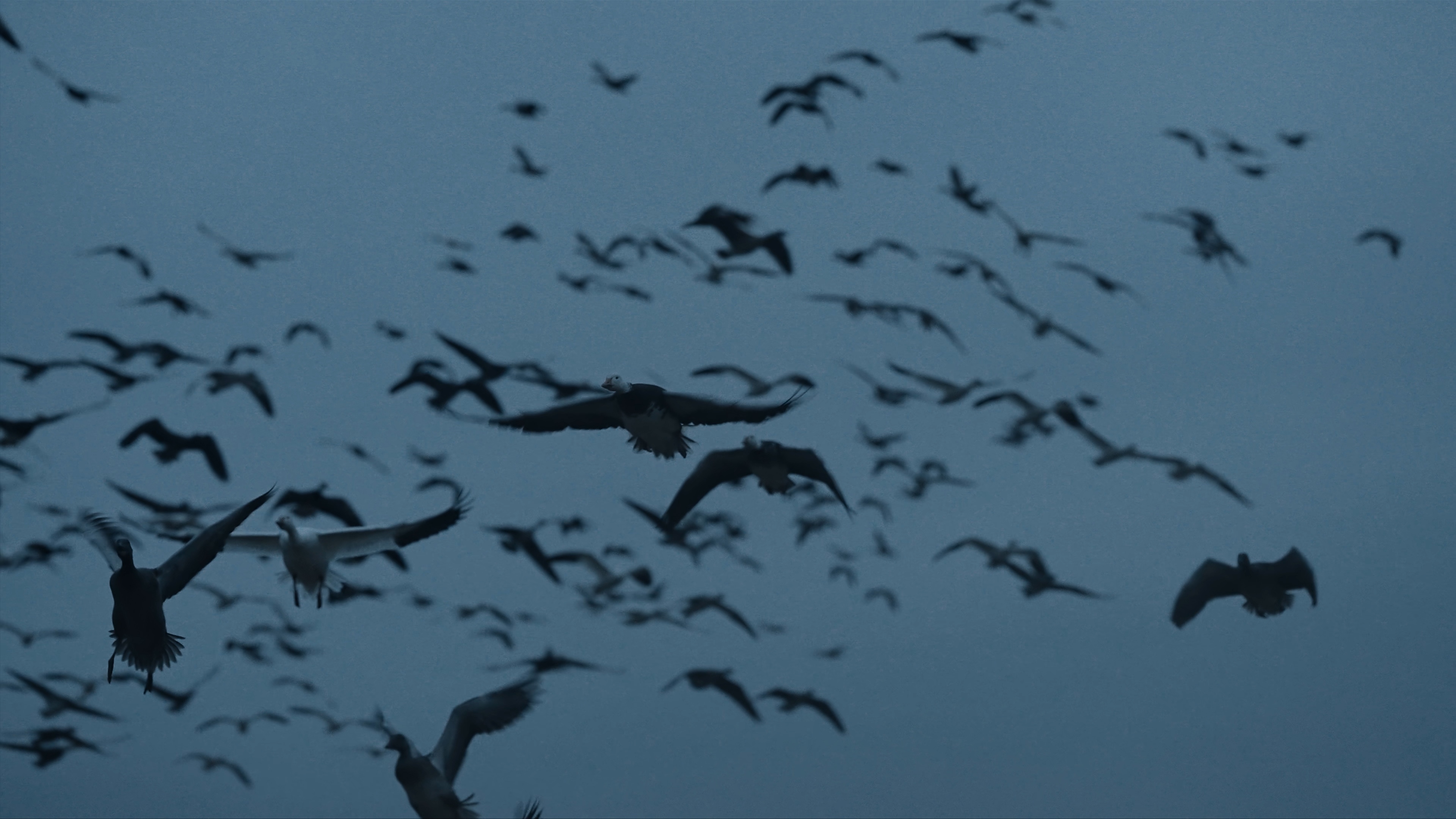 Habang naghihintay kami doon, nagsimulang lumiwanag ang langit, at nagsimula ang mga tunog ng tumatawag na gansa. Tumaas lamang ang antas ng kanilang pag-iingay nang mas maliwanag ang kalangitan. Ang langit ay napuno ng Canadian at snow gansa na may pasulput-sulpot na kawan ng mga mallard. May mga sandali na pinagmamasdan ang tila buhawi ng mga ibon habang umiikot sila sa itaas namin na naghahanap upang itakda ang kanilang mga pakpak.