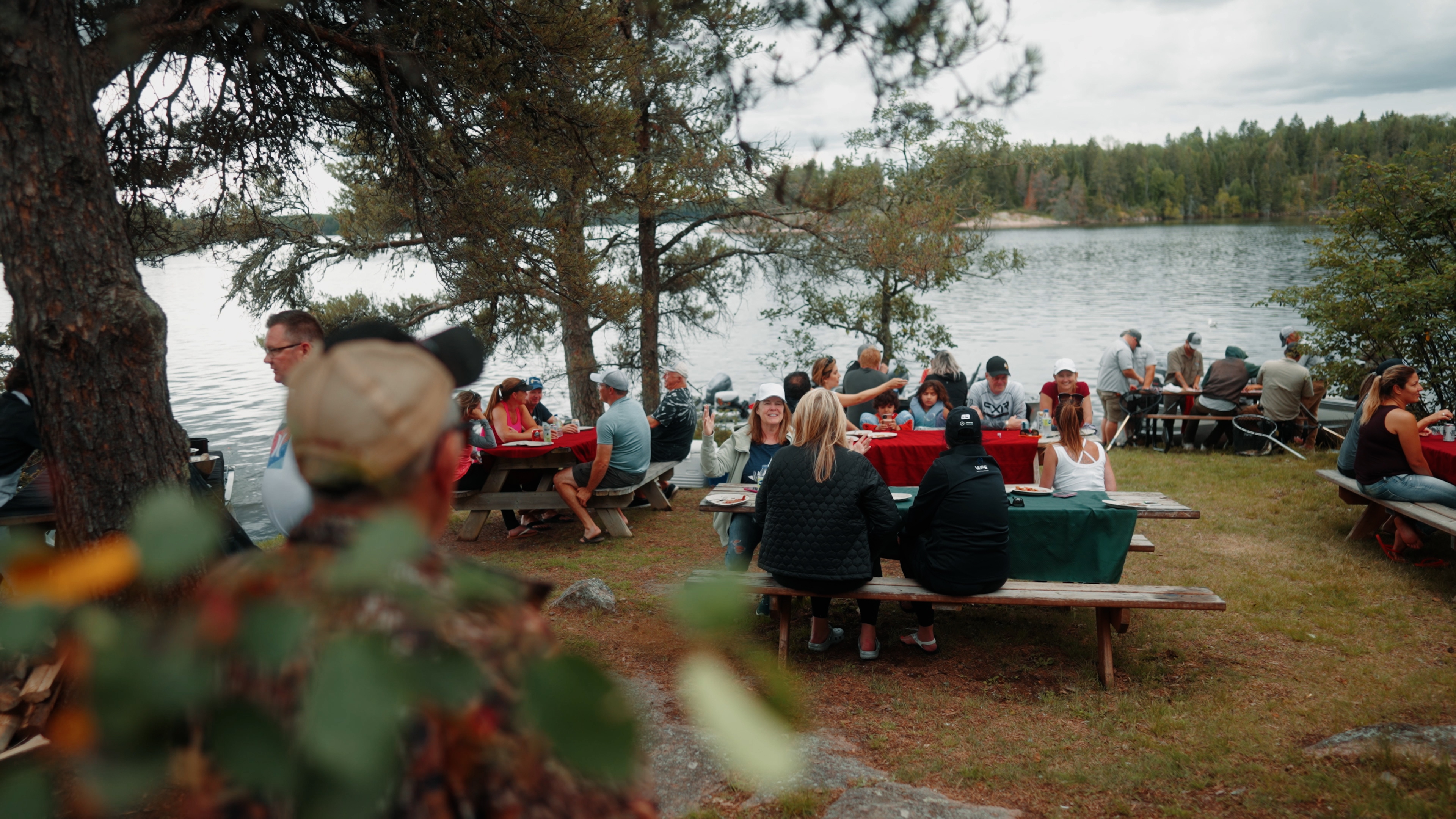 Bago magtanghali, tumungo kami sa baybayin ng tanghalian, kung saan nagkita-kita kami kasama ang iba pa naming grupo. Habang nililinis ng mga gabay ang lahat ng isda, nakipag-ugnayan kaming muli sa aming mga kaibigan, nagkuwento ng mga isda, at nagbahagi kung paano nagpunta ang umaga ng lahat. Ang panonood sa mga gabay na naglilinis ng isda at naghahanda ng tanghalian ay talagang isang bagay ng sining. Ito ay halos tulad ng tula. Lahat ay may kanya-kanyang trabaho. Alam ng lahat ang kanilang tungkulin, at nagtatrabaho sila bilang isang makina upang baguhin ang isang malayong baybayin sa isang mahusay na panlabas na kusina na nagbibigay ng isang pambihirang tanghalian sa baybayin. Hindi nagtagal ay handa na ang pagkain; lahat ay pumila, napuno ang kanilang plato, at nasiyahan sa isang tunay na Canadian walleye shore lunch. Ito ay kahanga-hanga.