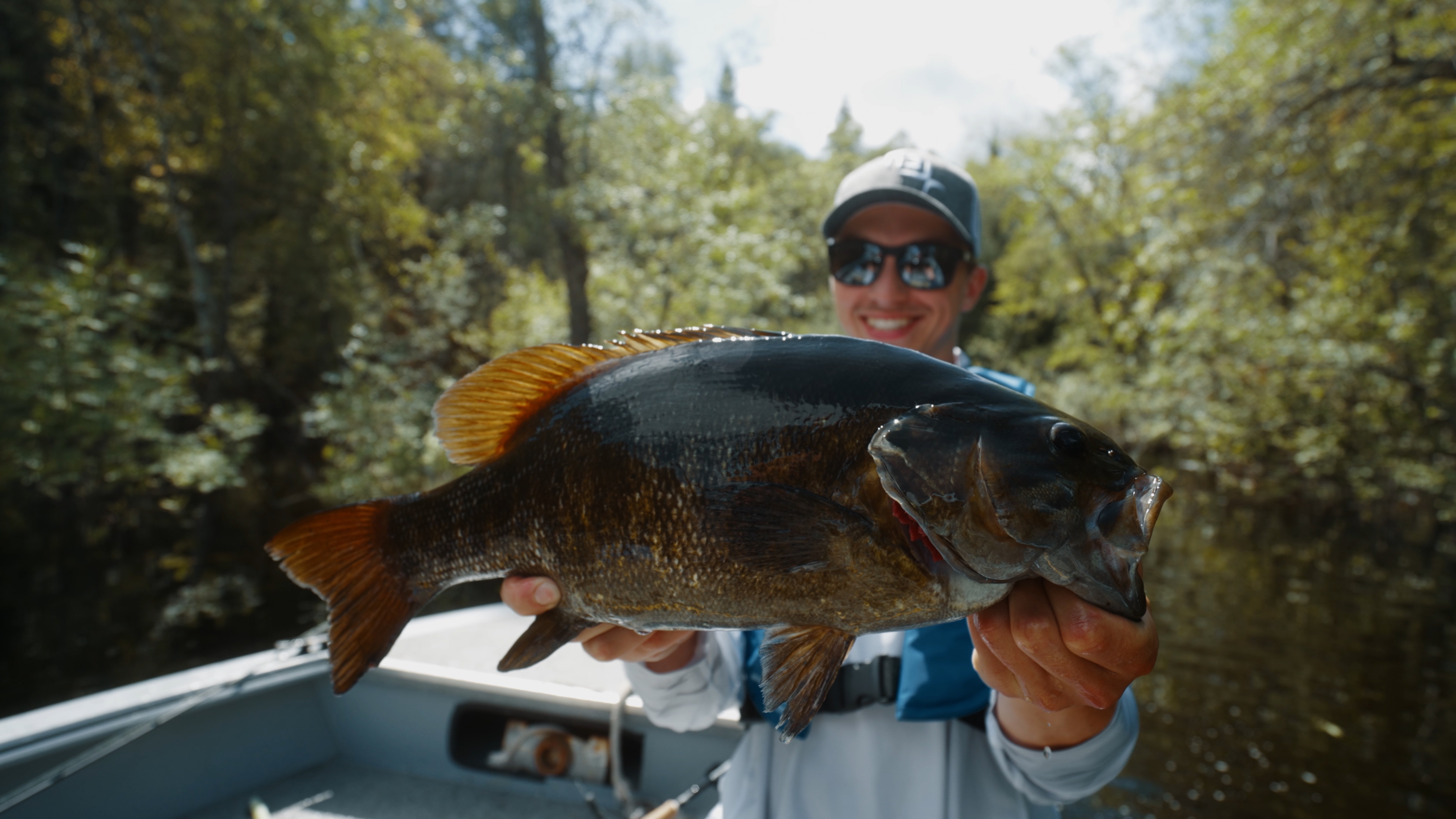 Pagkatapos ng tanghalian, nagpasya kaming hatiin ang hapon sa smallmouth bass at pike fishing. Nagsimula kami sa programa ng bass, at si Dawson ay may maliit na bunganga ng sapa na gusto niyang tuklasin sa likod ng isang bay. Palihim kaming pumasok sa sapa, dahan-dahang nangisda papasok, nakahuli ng ilang maliit na bibig dito at doon, ngunit hanggang sa makarating kami mismo sa sapa ay uminit at mabigat ang mga bagay. Pangunahing naghahagis kami ng mga ned rig, at hindi kami nag-pitch ng higit sa 8 talampakan mula sa gilid ng bangka, ngunit dinurog namin ang mga ito doon. Nahuli ni Josh ang isang smallie na tumutulak ng 20 inches at habang nilalabanan niya ito, may 4-5 pang smallmouth na lumalangoy sa paligid na humahabol dito. Ito ay wala sa mundong ito.