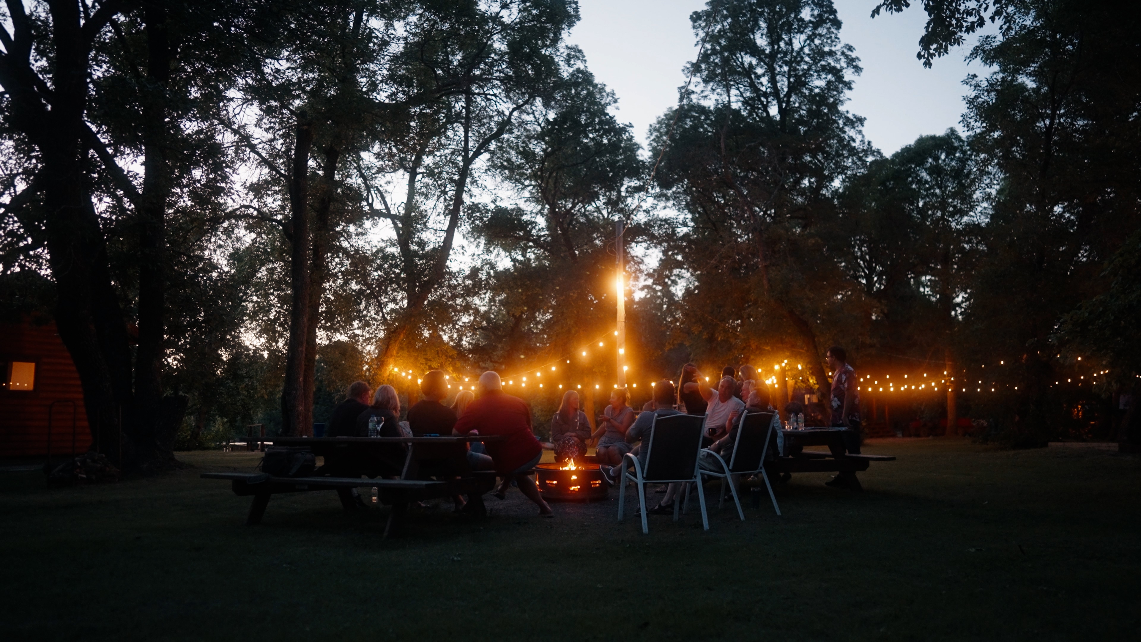 Pagkatapos ng hapunan ay isa sa mga paborito kong oras sa Eagle Nest . Gustung-gusto ko ang pangingisda at nasa tubig, ngunit ang pakikipagkaibigan ang paborito kong bahagi ng anumang paglalakbay sa pangingisda. Nakaupo sa paligid ng apoy, nakikinig sa one-man band, naglalaro ng horseshoes o corn hole—pangalan mo na—lahat ay nariyan para lumikha ka ng mga alaala kasama ang mga kaibigan, pamilya, o mga kasamahan na magtatagal ng panghabambuhay.