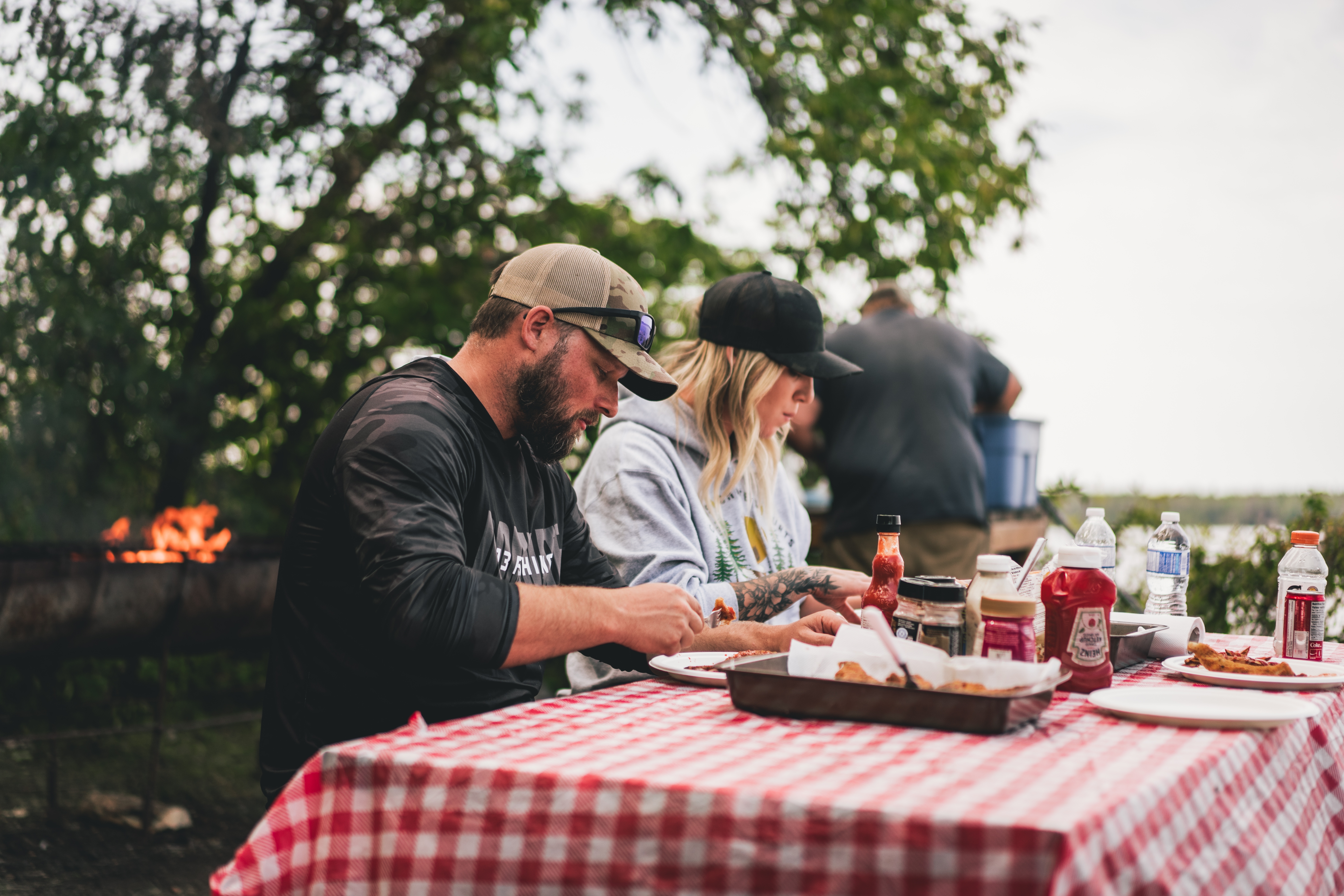 Papalapit na ang oras ng tanghalian, alam ni James na oras na para magpalit ng mga gamit at habulin ang feisty walleye na tinatawag itong ilog na pauwi. Kasing dali ng 1,2,3, sina Breanne at Bryan ay humahabol ng sunod-sunod na walleye. Matapos mag-imbak ng sapat para sa tanghalian at masiyahan sa mabilis na pagkilos, dinala ni James ang mga tripulante sa isa sa kanyang mga lugar ng tanghalian sa baybayin at nagsimulang maghanda upang magluto.