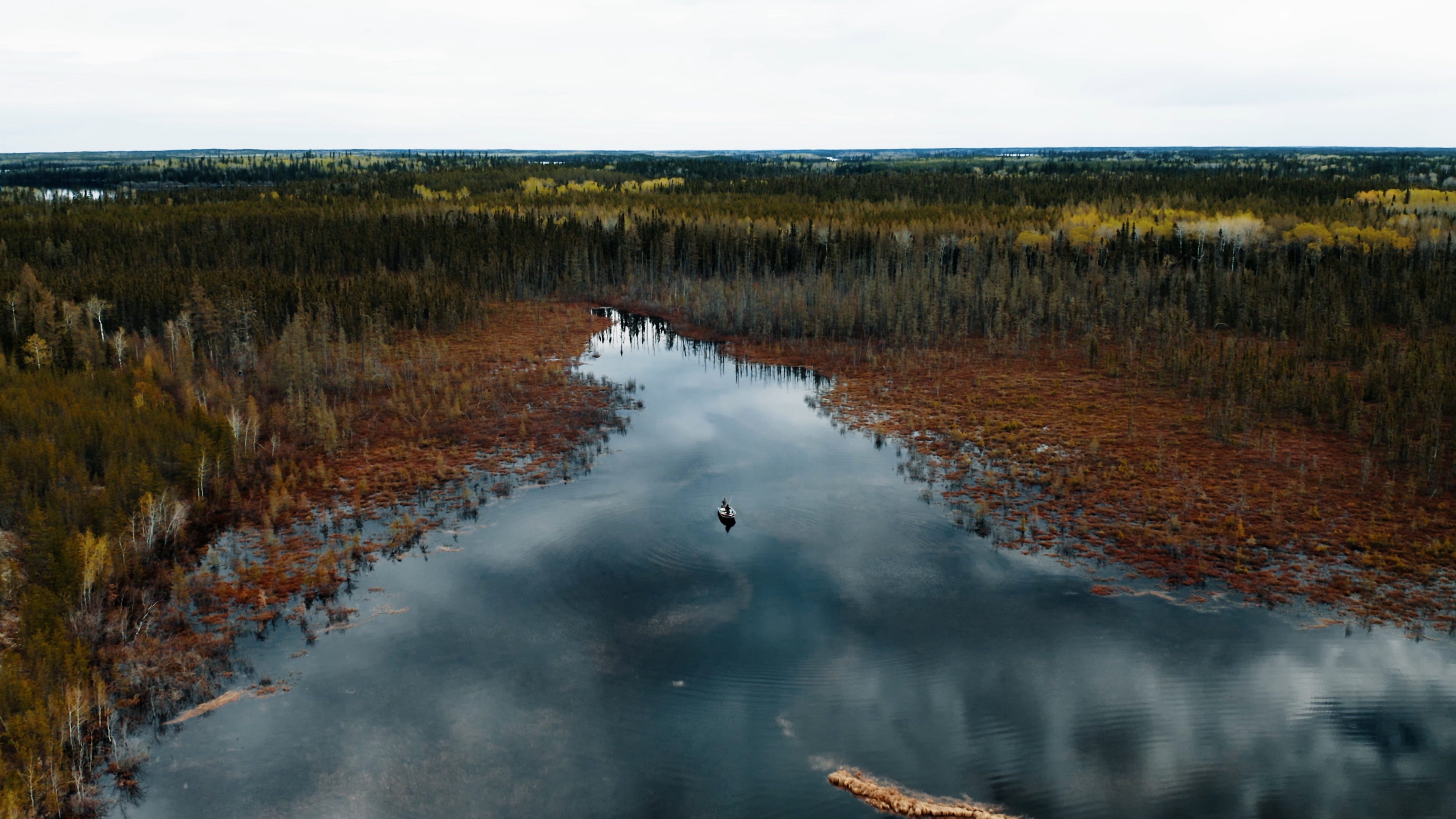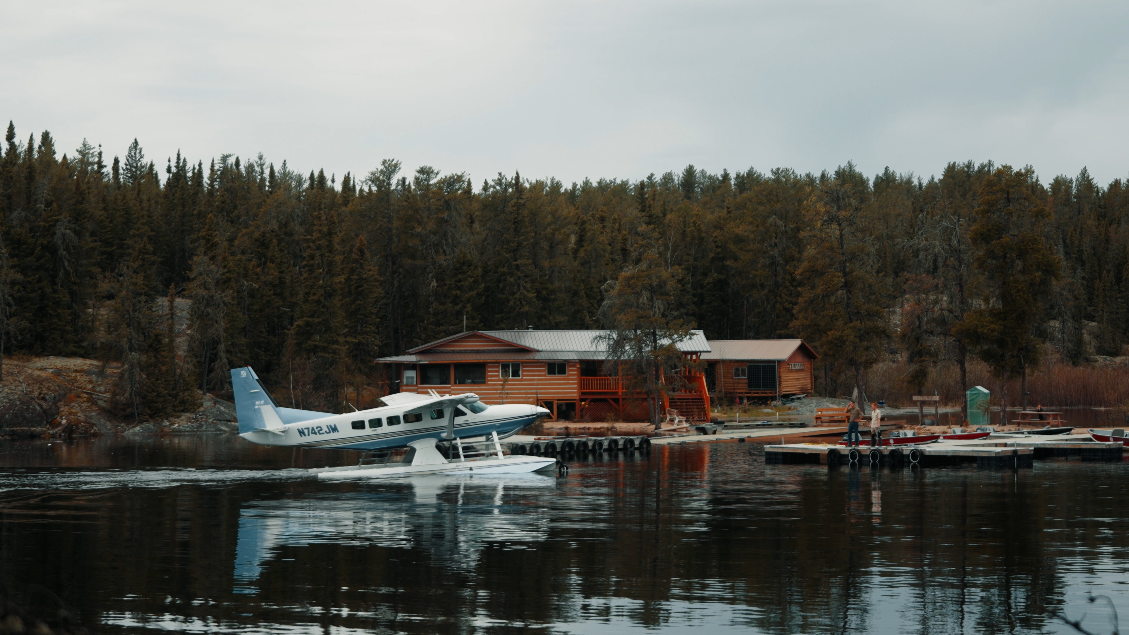Ang paglipad papunta sa lodge ay isang maikling 60-milya na paglukso sa ilan sa mga hindi kapani-paniwalang tanawin na makikita mo. Sa pag-angat mo at pagtungo sa mga puno, mabilis mong malalaman kung gaano kalayo ang bansang ito. Sa buong byahe, patuloy kang mamamangha sa nakamamanghang mosaic ng walang katapusang mga lawa at ilog na pinagsama ng walang katapusang dagat ng berdeng likha ng boreal forest ng rehiyon.