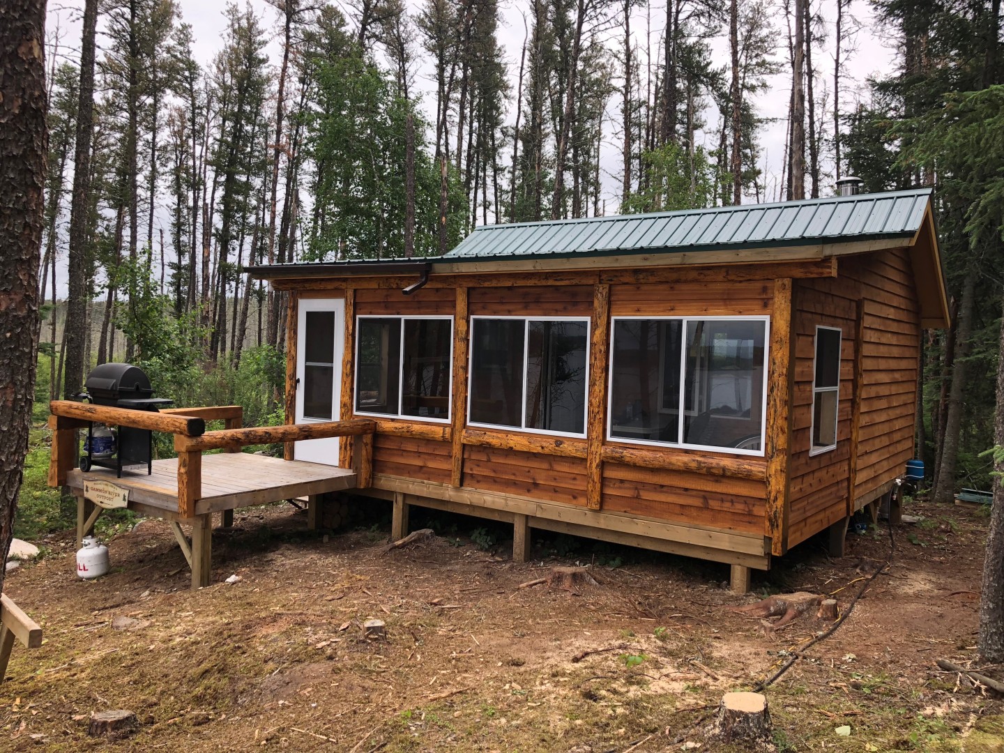 This 4 person cabin is situated on the furthest east end of the Gammon River. Right next to the cabin is a set of rapids, and at the far west end of the river lies Carlson Falls. A natural masterpiece with water crashing over 30 feet of the Canadian shield. This river is an amazing fishery for walleye and northern pike. The fast water and narrow sections create excellent habitat for early spawning, which in turn create incredible high action fishing. Many back eddy’s will have you pulling walleye out as you float with the current. A truly unique fishing experience in a natural setting. The Gammon River is a 35 minute flight (70 miles from our float base).